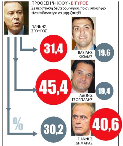 Ο επίσημος υποψήφιος του ΠΑΣΟΚ πάντως δείχνει να επικρατεί εναντι των άλλων πιθανών αντιπάλων του Βασίλη Κικίλια και Αδωνη Γεωργιάδη.