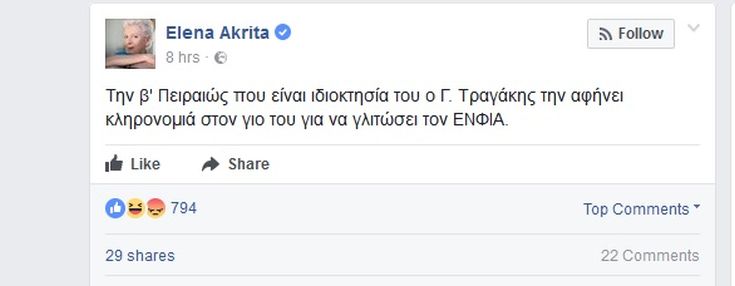 «Την β' Πειραιώς που είναι ιδιοκτησία του ο Γ. Τραγάκης την αφήνει κληρονομιά στον γιο του για να γλιτώσει τον ΕΝΦΙΑ» έγραψε.