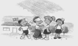 να δούνε ποιος θα τα φυλάει. Αυτός κλείνει τα μάτια του με ένα μαντήλι . Την ώρα που τα έχει κλειστά τα παιδιά ανακατεύονται.