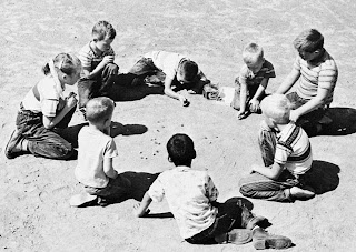 τα σκαμνάκια ήταν ότι καλύτερο. Δηλαδή  έσκυβαν όλα τα παιδιά με τη σειρά και σε απόσταση το ένα από το άλλο περίπου τρία μέτρα  ή και λιγότερο αν δεν υπήρχε χώρος.