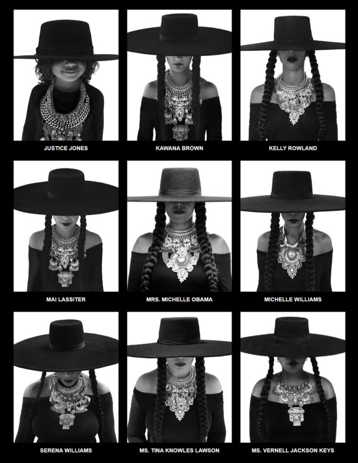 Μαζί με τη Μισέλ Ομπάμα ήταν, μεταξύ άλλων, η Σερένα Ουίλιαμς, η Τίνα Νόουλς και τα μέλη των «Destiny's Child», Κέλι Ρόουλαντ και Μισέλ Ουίλιαμς. Όλες με καπέλο με πλατύ γείσο, μακριές πλεξούδες και βαρύ, πλούσιο κολιέ. Οι φωτογραφίες αναρτήθηκαν στον επίσημο ιστότοπο της Μπιγιονσέ.