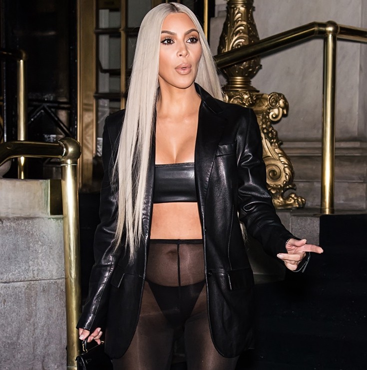 Η τηλεπερσόνα, που εδώ και λίγες ημέρες λανσάρει νέο λουκ στα μαλλιά της, που είναι βαμμένα σχεδόν ασημί και αρκετά μακριά, συνδύασε το αποκαλυπτικό κολάν με ένα κοντό δερμάτινο κροπ-τοπ και ένα σακάκι.