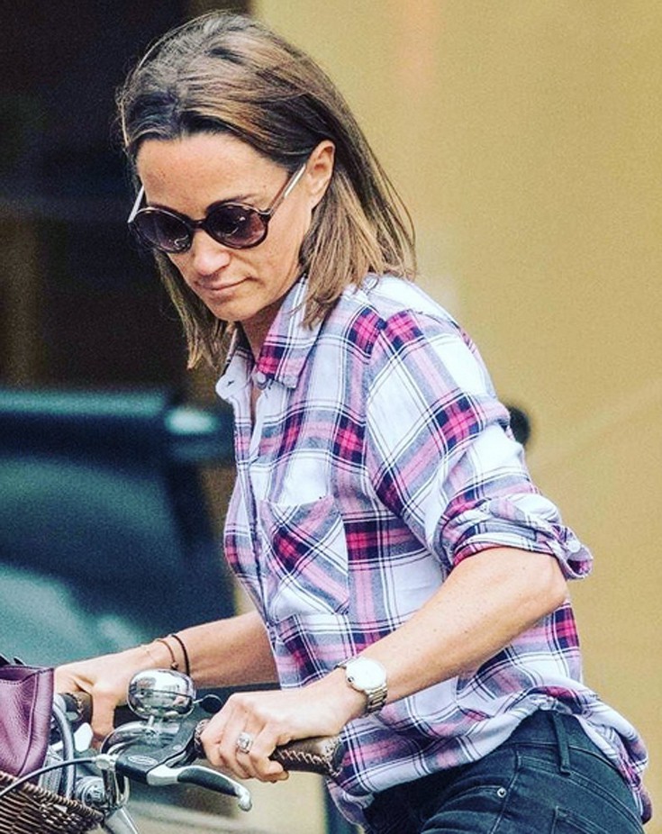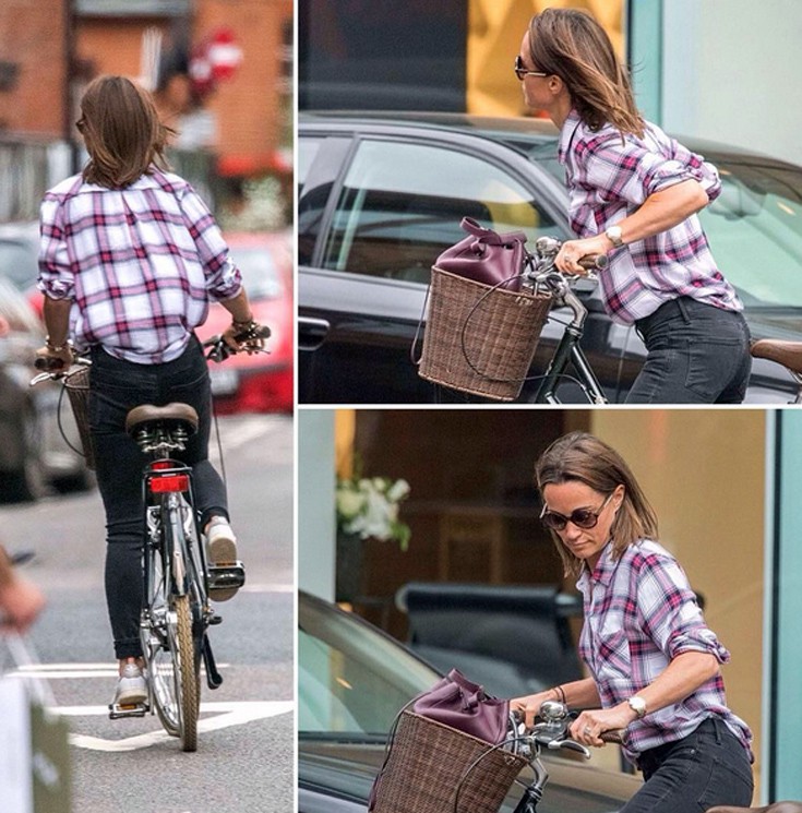 Η Pippa Middleton εμφανίστηκε στους δρόμους του Λονδίνου, με ένα καρό πουκάμισο και τζιν παντελόνι πάνω στο ποδήλατό της.