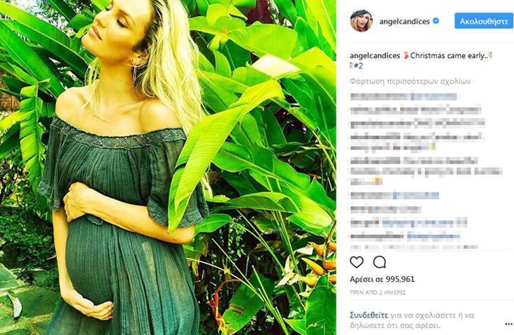 πράσινο φόρεμα και κρατώντας την κοιλιά της η Candice Swanepoel ανακοίνωσε τη δεύτερη εγκυμοσύνη της γράφοντας πως «τα Χριστούγεννα ήρθαν νωρίτερα».