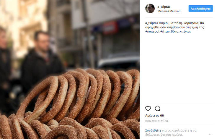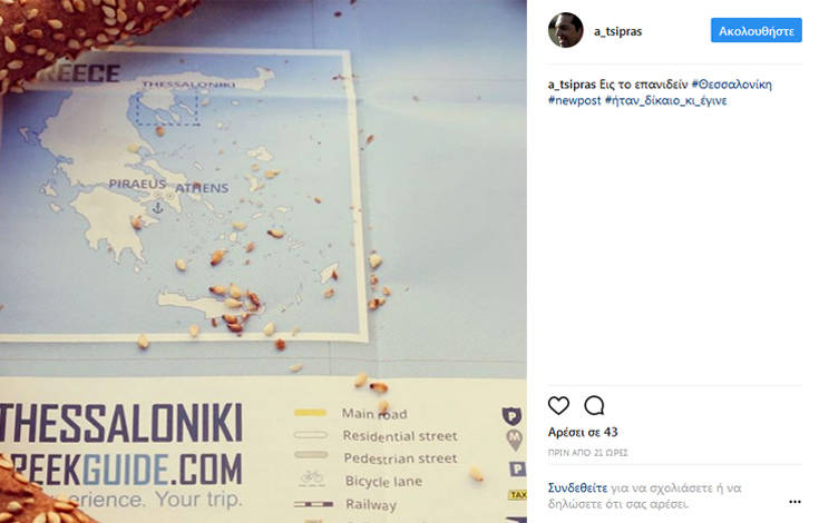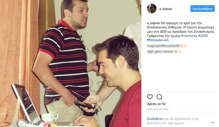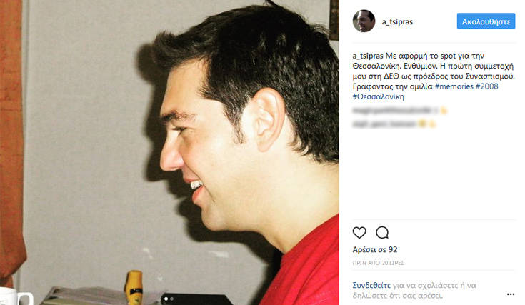 «Με αφορμή το spot για την Θεσσαλονίκη. Ενθύμιον. Η πρώτη συμμετοχή μου στη ΔΕΘ ως πρόεδρος του Συνασπισμού. Γράφοντας την ομιλία #memories #2008 #Θεσσαλονίκη», έγραψε στον λογαριασμό του.