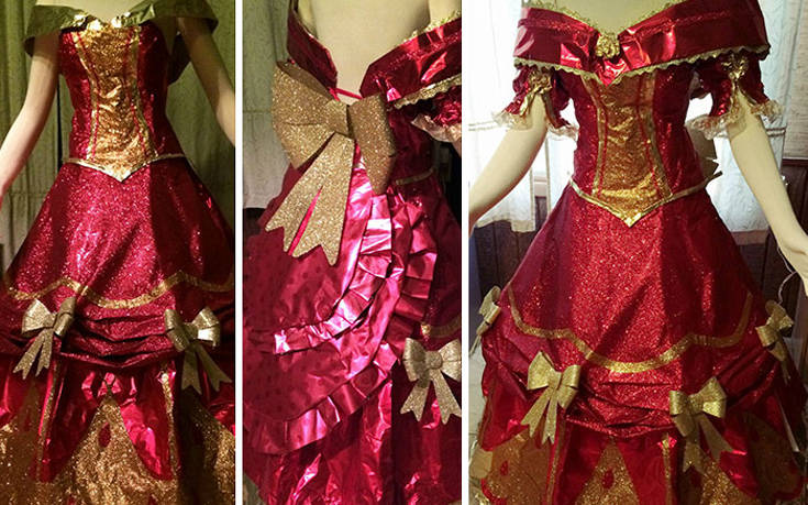 Κάθε φόρεμα εκτός από χαρτί αποτελείται από χάρτινα φιογκάκια, κορδέλες και πολύ γκλίτερ για να γίνει πιο εντυπωσιακό.