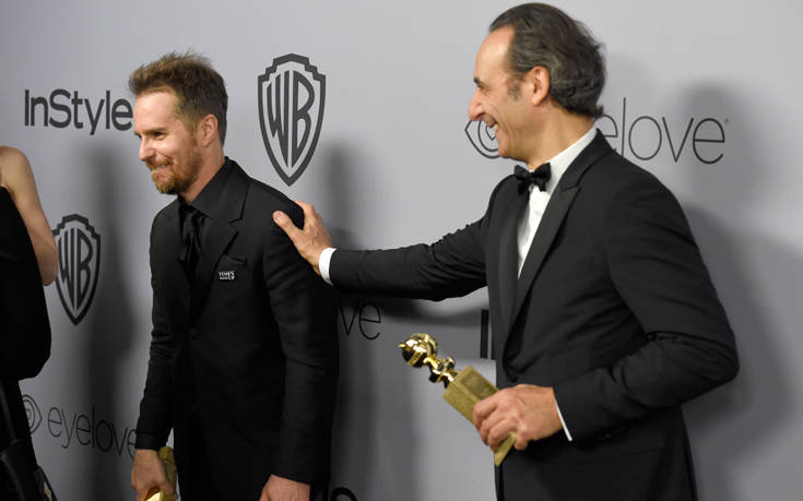 Χρυσή σφαίρα για την καλύτερη σκηνοθεσία έλαβε ο Γκιγιέρμο δελ Τόρο (The Shape of Water), καλύτερη ταινία, μιούζικαλ ή κωμωδία αναδείχθηκε το Lady Bird, το βραβείο πρώτου ρόλου σε δραματική ταινία πήγε στον Γκάρι Όλντμαν (Darkest Hour), το βραβείο δεύτερου ρόλου σε δραματική ταινία πήρε ο Σαμ Ρόκγουελ (Three Billboards Outside Ebbing, Missouri), βραβείο δεύτερου γυναικείου ρόλου πήρε η Άλισον Τζένι (I, Tonya), βραβείο καλύτερου ρόλου σε κωμωδία ο Τζέιμς Φράνκο (The Disaster Artist) και Χρυσή Σφαίρα καλύτερου σεναρίου έλαβε ο Μάρτιν Μακντόνα (Three Billboards...). Τη δεύτερή του Χρυσή Σφαίρα για το καλύτερο σάουντρακ έλαβε ο Αλεξάντρ Ντεπλά (The Shape of Water).