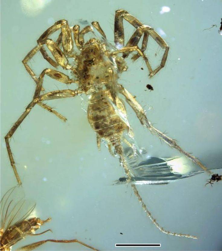 τώρα, είδος ζώου, το οποίο μοιάζει πολύ με αράχνη με ουρά, ανακαλύφθηκε διατηρημένο σε κεχριμπάρι από τη Μιανμάρ, που έχει ηλικία περίπου 100 εκατομμυρίων ετών.
