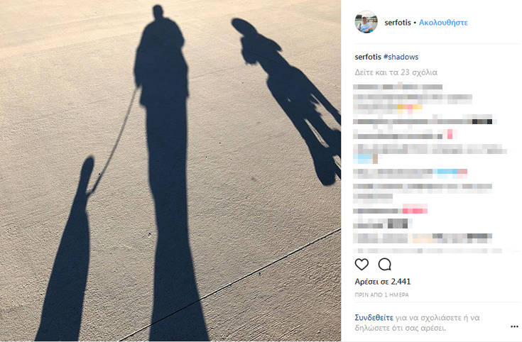 Στη λεζάντα της φωτογραφίας, ο Φώτης Σργουλόπουλος, έγραψε με hastag της λέξη «shadows» δηλαδή σκιές.