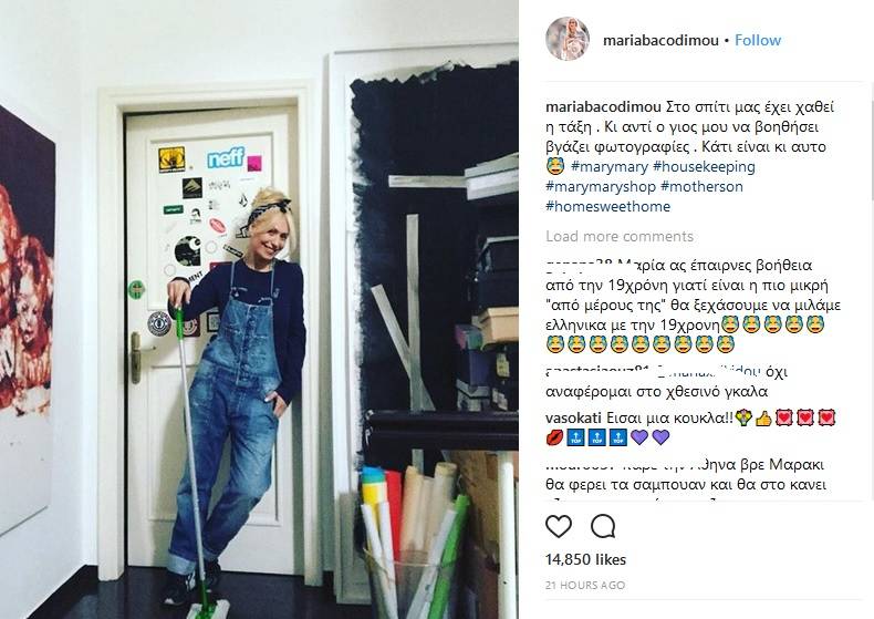 βλέπουμε τη Μαρία Μπακοδήμου με κομψά ρούχα στις δημόσιες εμφανίσεις της. Αυτή τη φορά όμως είπε να μας δείξει την πιο... ατημέλητη πλευρά του εαυτού της.