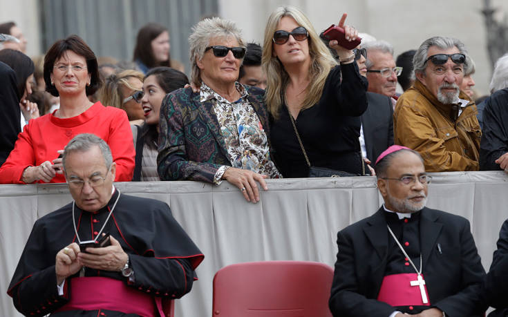 εκκεντρικοί το ξέρουμε… Ο βετεράνος τραγουδοποιός Ροντ Στιούαρτ, που φέρει τον τίτλο «Σερ» καθώς χρίστηκε ιππότης από την βασίλισσα Ελισσάβετ – θέλησε να παρακολουθήσει ομιλία του Πάπα Φραγκίσκου στο Βατικανό.