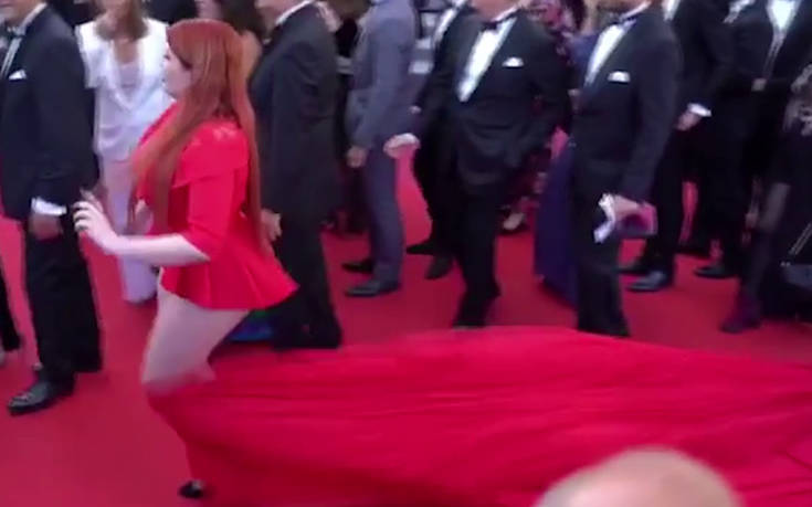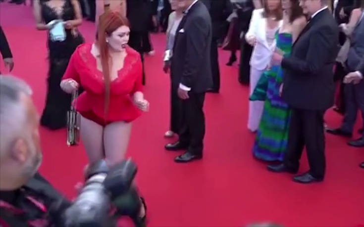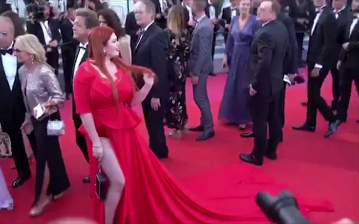 Το plus size μοντέλο από την Ρωσία Yulia Rybakova έμεινε με το εσώρουχο στο κόκκινο χαλί στις Κάννες αφού ένας άντρας δεν κατάλαβε ότι πατούσε το φόρεμά της.