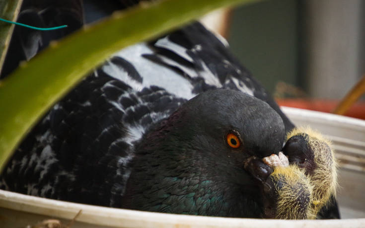 ελληνική Βουλή, καθώς μια περιστέρα επέλεξε μια από τις γλάστρες που βρίσκονται σε εσωτερικό φωταγωγό του Κοινοβουλίου για να γεννήσει και να μεγαλώσει τα μωρά της.