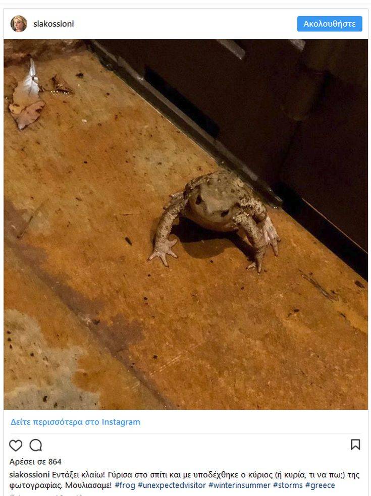 Συγκεκριμένα, η δημοσιογράφος και παρουσιάστρια του κεντρικού δελτίου ειδήσεων του ΣΚΑΪ βρήκε στο κατώφλι της έναν βάτραχο, τον οποίο έβγαλε μάλιστα φωτογραφία, την οποία ανάρτησε στον λογαριασμό της στο Instagram.