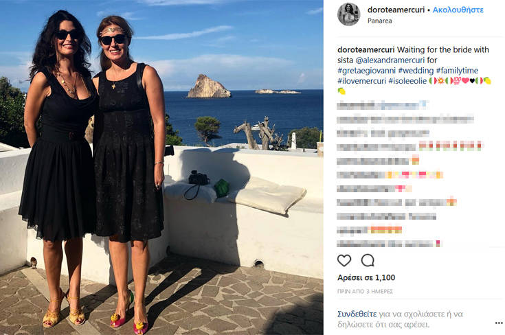 αδελφής της δημοσίευσε στον λογαριασμό της στο Instagram η Δωροθέα Μερκούρη. Οι δυο τους ήταν καλεσμένες σε γάμο συγγενικού τους προσώπου στην Ιταλία.