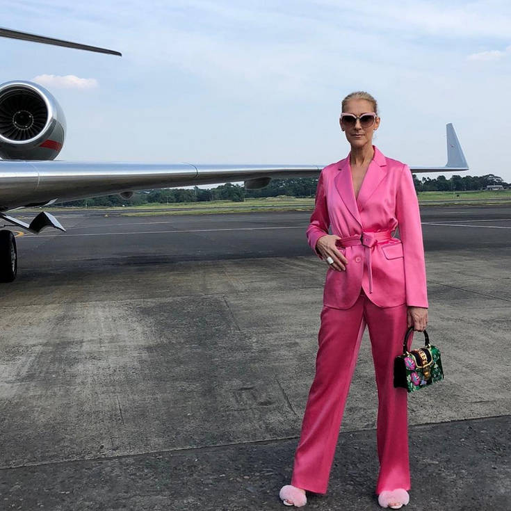 Όπως φαίνεται και στη φωτογραφία που ανέβασε στο Instagram, η Σελίν Ντιόν βάζει τέλος στο κλασικό και αναμενόμενο ντύσιμο και για το αεροπορικό της ταξίδι έβγαλε από την ντουλάπα της ένα σύνολο εντελώς ροζ το οποίο και συνδύασε με γούνινες παντόφλες. «Λένε ότι το ροζ είναι το καινούριο μαύρο», σχολίασε η ντίβα, προφανώς διασκεδάζοντας τους φαν της.