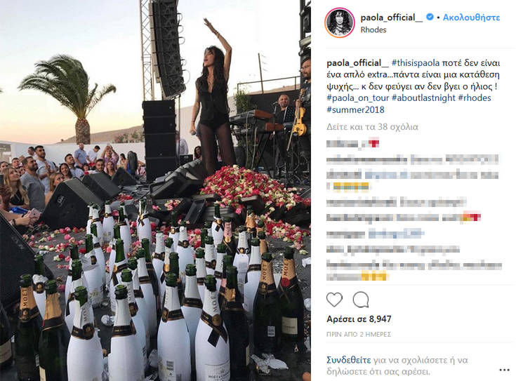 σαμπάνιες και αμέτρητα γαρύφαλλα στήθηκαν στα πόδια της Πάολα στην εμφάνισή της στη Ρόδο.