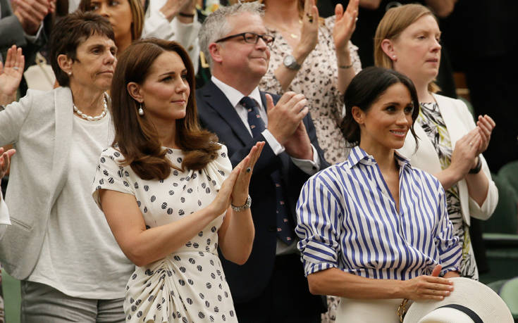 Καθισμένη στην πρώτη σειρά του βασιλικού θεωρείου δίπλα στην Κέιτ Μίντλετον, η Μαρκλ κρατούσε το καπέλο της στην αγκαλιά της ενώ παρακολουθούσε τη φίλη της να αγωνίζεται εναντίον της Αντζελίκ Κέρμπερ, η οποία και νίκησε τον αγώνα.
