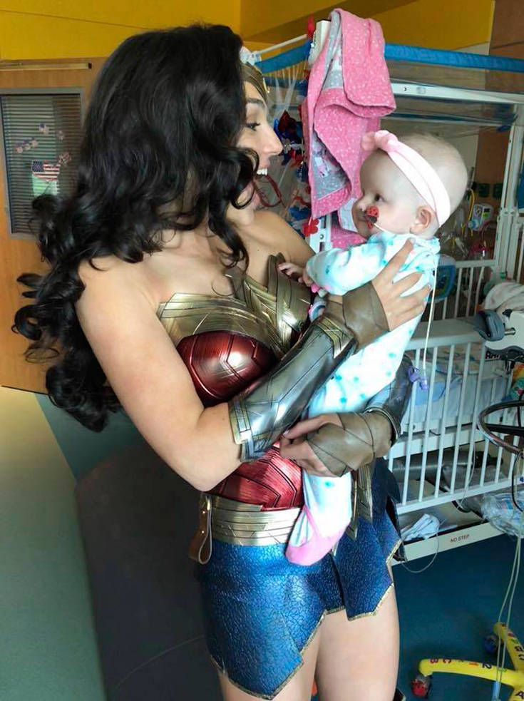 «Ήμουν στο δωμάτιο με έναν από τους γιατρούς και την Καραλάιν, όταν μέσα σε αυτό μπήκε η Wonder Woman, η Γκαλ Γκαντότ, με όλη τη στολή της. Είχε ένα τεράστιο χαμόγελο την ώρα που ερχόταν προς το μέρος μου. Με ρώτησε εάν μπορώ να κρατήσω την Καραλάιν και την πήρε αγκαλιά», είπε η μητέρα της μικρής, Κέλι Χουίνκ, η οποία έβγαλε πολλές φωτογραφίες και τις ανέβασε στον προσωπικό της λογαριασμό στο Facebook.