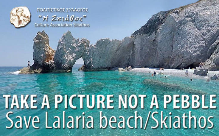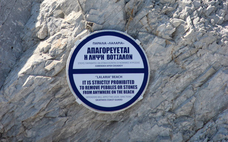 βότσαλα» προτρέπουν τους τουρίστες, που επισκέπτονται την παραλία Λαλάρια στη Σκιάθο, μέλη του τοπικού πολιτιστικού συλλόγου, που βλέπουν να αλλοιώνεται η εικόνα της γραφικής παραλίας με την αφαίρεση των χαρακτηριστικών βότσαλων.