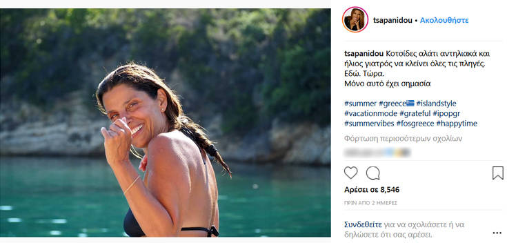 Η γνωστή παρουσιάστρια, αν και δεν έχει αποκαλύψει στους διαδικτυακούς της φίλους πού περνάει τις διακοπές της, φροντίζει, όμως, να ανεβάζει φωτογραφίες από την καθημερινότητά της. Και είναι όλες τους φυσικές και υπέροχες.