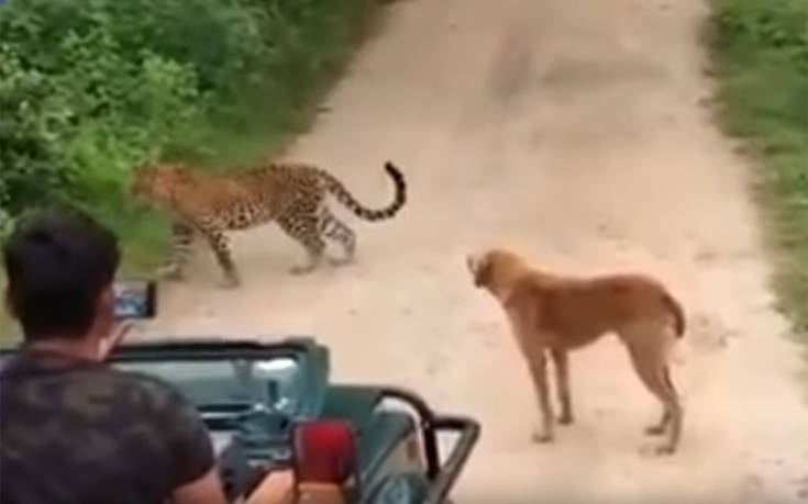 λιγότερο τρομακτική, όταν ένας σκυλάκος δέχεται την ξαφνική επίθεση μιας λεοπάρδαλης σε δάσος της Ινδίας.
