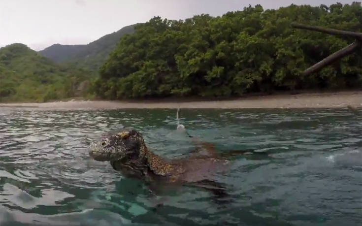 Δύο δράκοι του Κομόντο τους πλεύρισαν και δεν έλεγαν να φύγουν έξω ακριβώς από τις ακτές του Rinca Island, μέρος του Komodo National Park της Ινδονησίας.