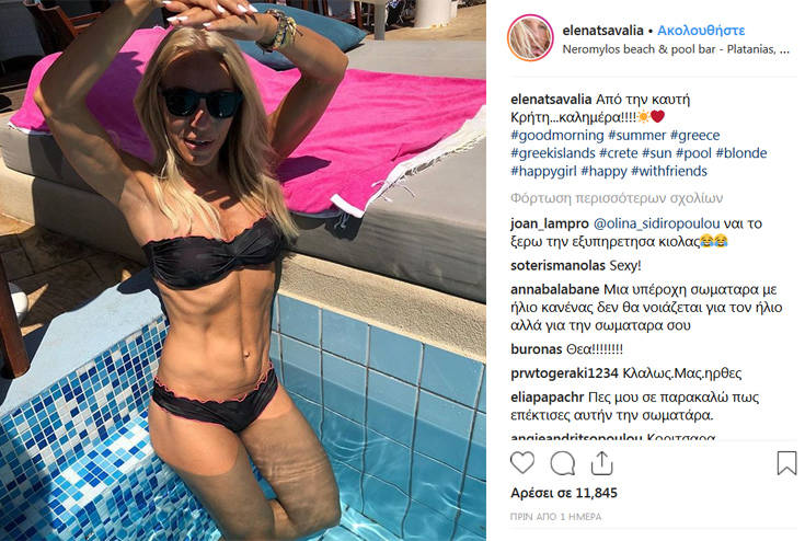 διατροφή της, ενώ η γυμναστική είναι αναπόσπαστο κομμάτι της καθημερινότητάς της. Γι' αυτό και διαθέτει ένα από τα πιο καλογυμνασμένα κορμιά στην ελληνική showbiz. Και κάθε φορά, που ανεβάζει φωτογραφία της με μαγιό, οι διαδικτυακοί της φίλοι της στέλνουν τα κολακευτικά τους σχόλια.