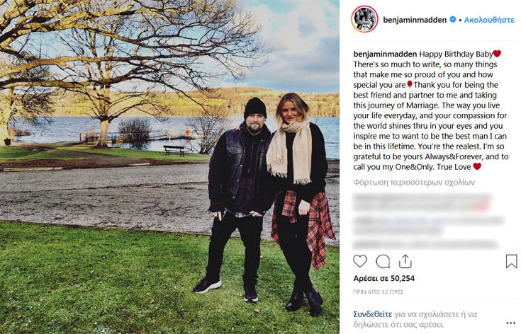 «Υπάρχουν τόσα πολλά να γράψω, τόσα πολλά πράγματα που με κάνουν υπερήφανο για εσένα και πόσο ιδιαίτερη είσαι. Σε ευχαριστώ που είσαι ο καλύτερός μου φίλος και σύντροφος σε αυτό το ταξίδι του γάμου. Ο τρόπος που ζεις τη ζωή σου καθημερινά και η συμπόνια σου για τον κόσμο λάμπει μέσα από τα μάτια σου και με εμπνέεις να θέλω να είμαι ο καλύτερος άνθρωπος που μπορώ να είμαι σε αυτή τη ζωή», έγραψε μεταξύ άλλων ο Μπέντζι Μάντεν στον λογαριασμό του.