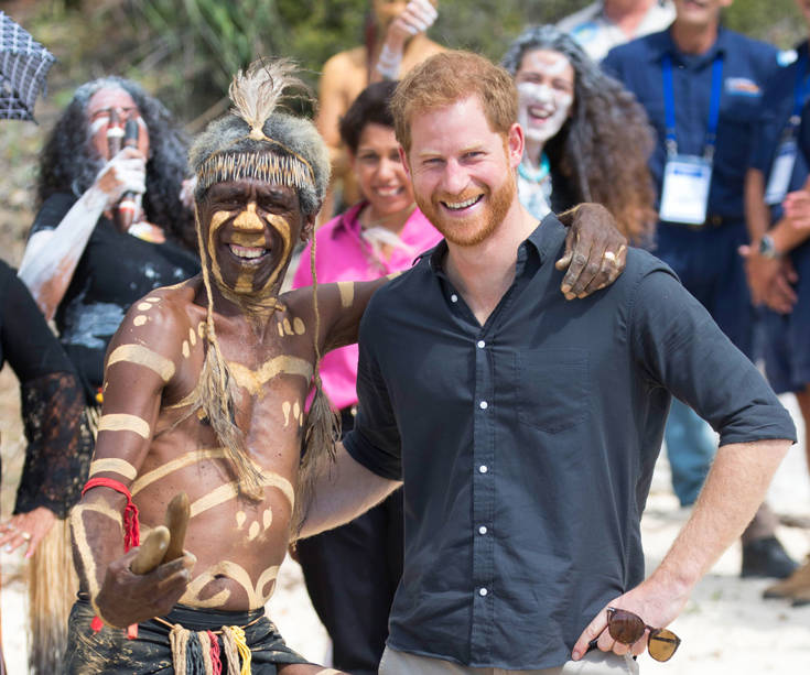 κοινότητα Αβοριγίνων στο νησί Φρέιζερ, στην ανατολική Αυστραλία, χωρίς να συνοδεύεται από τη σύζυγό του Μέγκαν, η οποία λόγω εγκυμοσύνης κάνει ένα μικρό διάλειμμα σε αυτή τη μεγάλη περιοδεία στον Ειρηνικό.