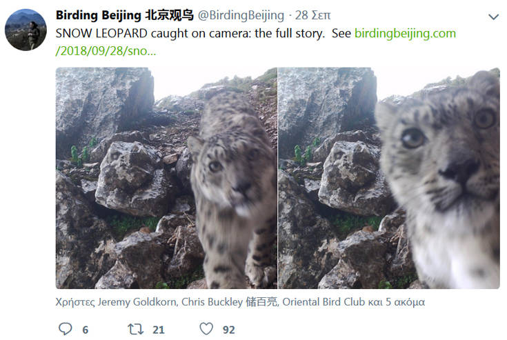 είναι η αντίδραση μίας λεοπάρδαλης του χιονιού, όταν βρίσκεται μπροστά σε μία φωτογραφική μηχανή, ψηλά στα βουνά; Το παίρνει το ποτάμι. Βγάζει… selfies! Ακούγεται περίεργο, αλλά είναι πέρα για πέρα αληθινό και σίγουρα αστείο.