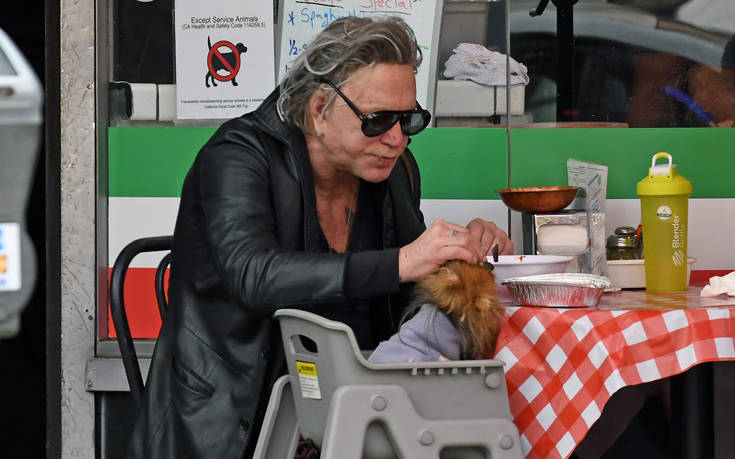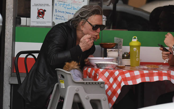πιστό του φίλο πήγε για φαγητό ο διάσημος ηθοποιός Μίκι Ρουρκ στο Λος Άντζελες.