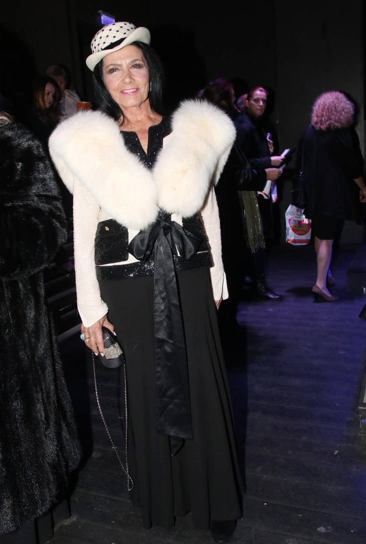 Η Ζωζώ Σαπουντζάκη με λευκό καπέλο και γούνα στο θέατρο