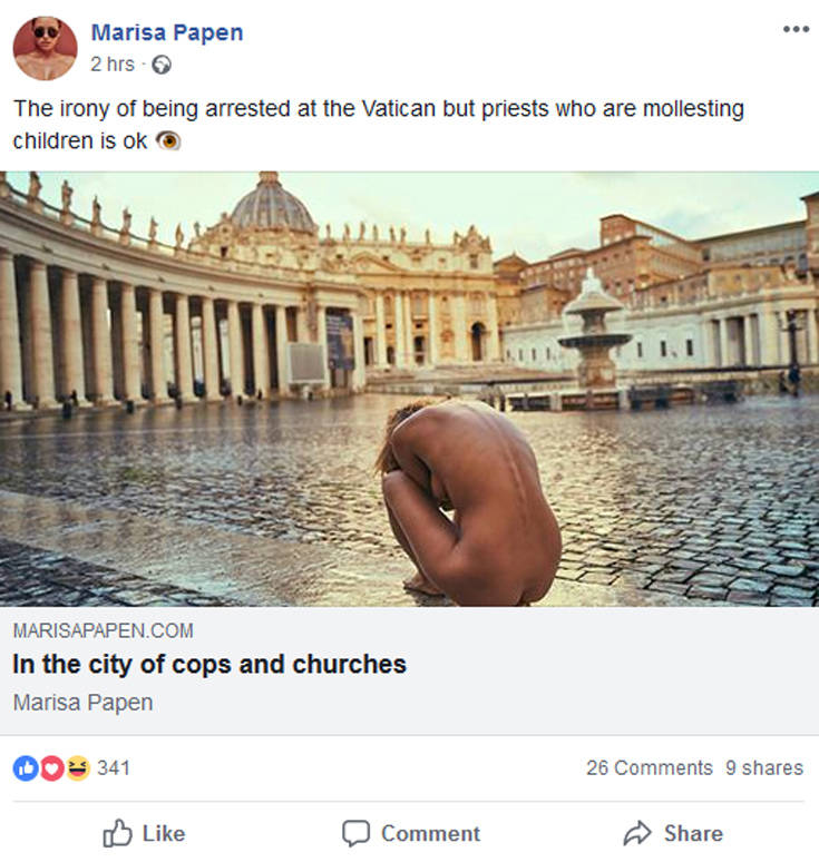 Παπέν συνελήφθη για μία προκλητική φωτογράφιση μέσα στο κρατίδιο του Βατικανό, στην έδρα της Ρωμαιοκαθολικής Εκκλησίας.