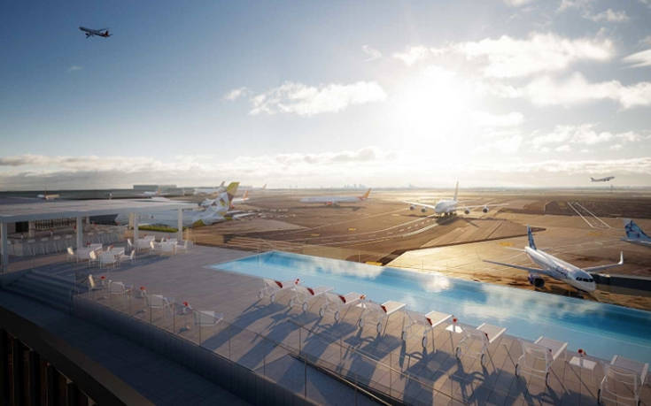 Ανάμεσα στα πιο εντυπωσιακά σημεία του φιγουράρει η πισίνα υπερχείλισης στην ταράτσα του ξενοδοχείου, όπου οι επισκέπτες θα μπορούν να απολαμβάνουν τα δροσιστικά μακροβούτια τους και ηλιοθεραπεία με κάποιο από τα cocktails του μπαρ, παρατηρώντας, ταυτόχρονα, την κινητικότητα στους διαδρόμους αποπροσγείωσης του αεροδρομίου.