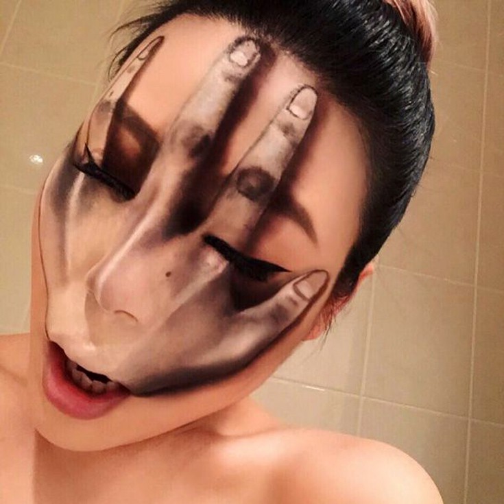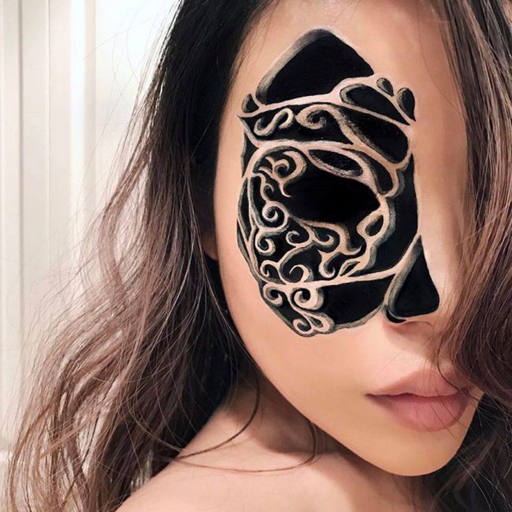 Χρησιμοποιεί τα προϊόντα του μακιγιάζ της και δημιουργεί οφθαλμαπάτες πάνω στο σώμα...