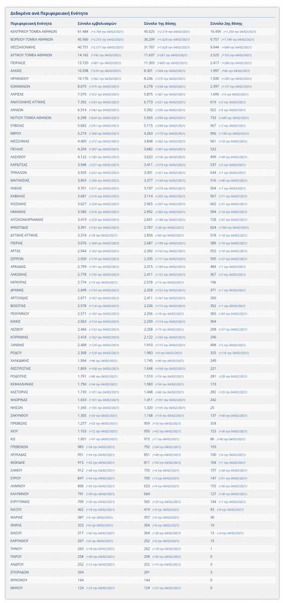 Δείτε αναλυτικά σε ποιές περιοχές στην Ελλάδα έχουν γίνει εμβολιασμοί για την 1η και τη 2η δόση.
