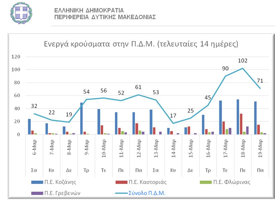 ΗΜΕΡΗΣΙΑ ΑΝΑΦΟΡΑ ΓΙΑ COVID-19: Τα ενεργά κρούσματα κατά Περιφερειακή Ενότητα στην Δυτική Μακεδονία