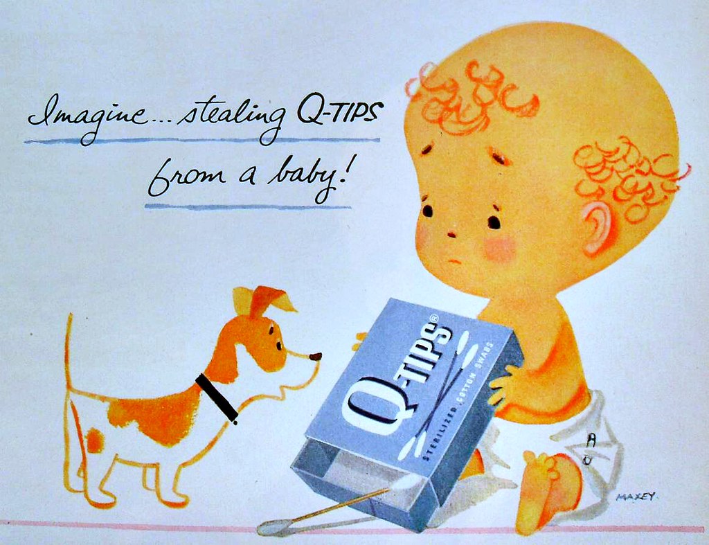 «Μαμά, ξέρεις ότι μπορείς να χρησιμοποιήσεις τα Q-tips για πολλά πράγματα… Μπορείς να τα χρησιμοποιήσεις όταν βάζεις κρέμα ή κάνεις μακιγιάζ, μαμά!», έγραφε μια έντυπη διαφήμιση του 1941.