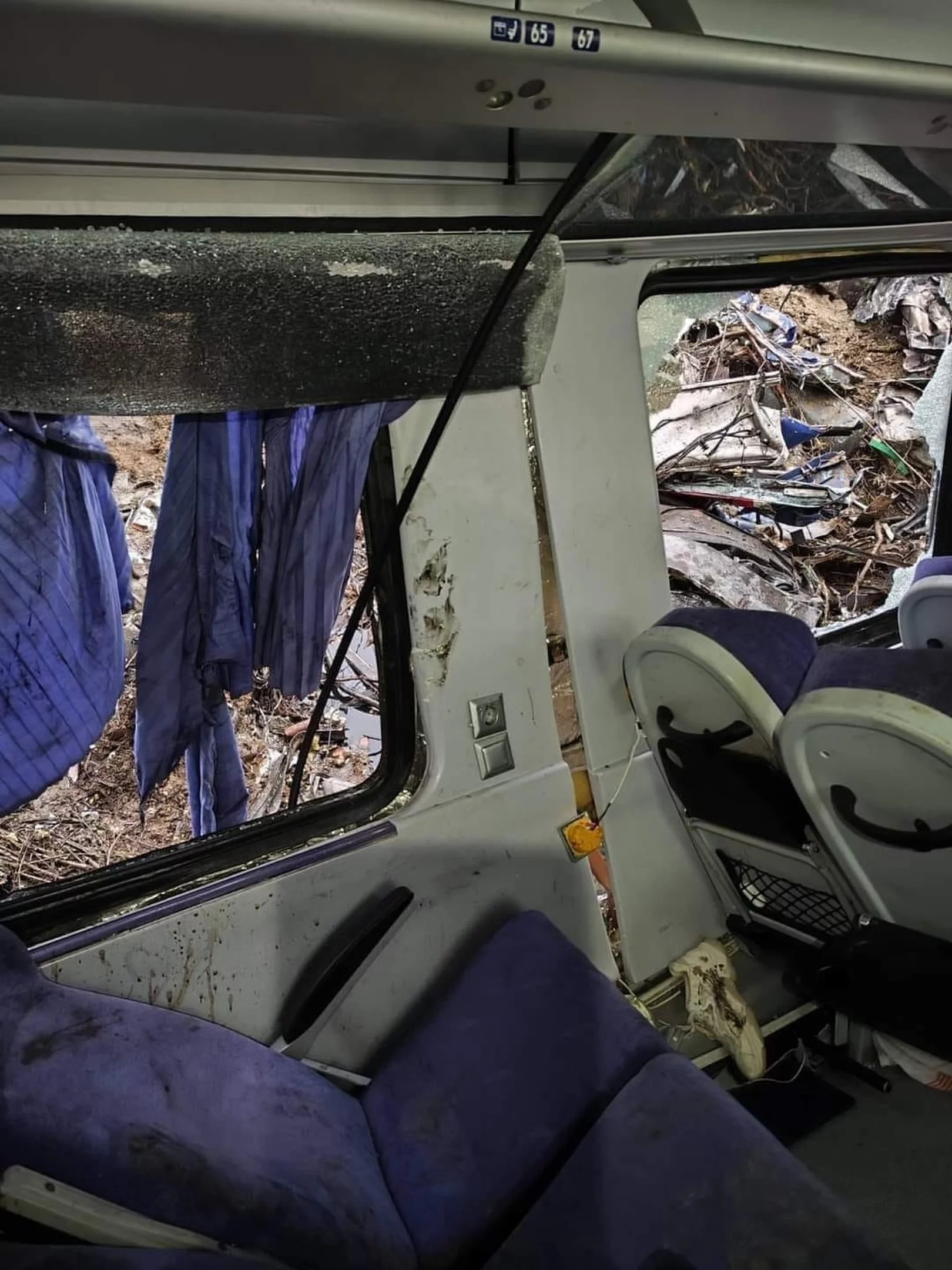 Η φωτογραφία που τραβήχτηκε μέσα στο βαγόνι 3, δείχνει τη θέση στην οποία καθόταν η άτυχη κοπέλα. Όπως είναι λογικό, η εικόνα αποτυπώνει τη σφοδρότητα της σύγκρουσης και το μέγεθος της καταστροφής που προκάλεσε.