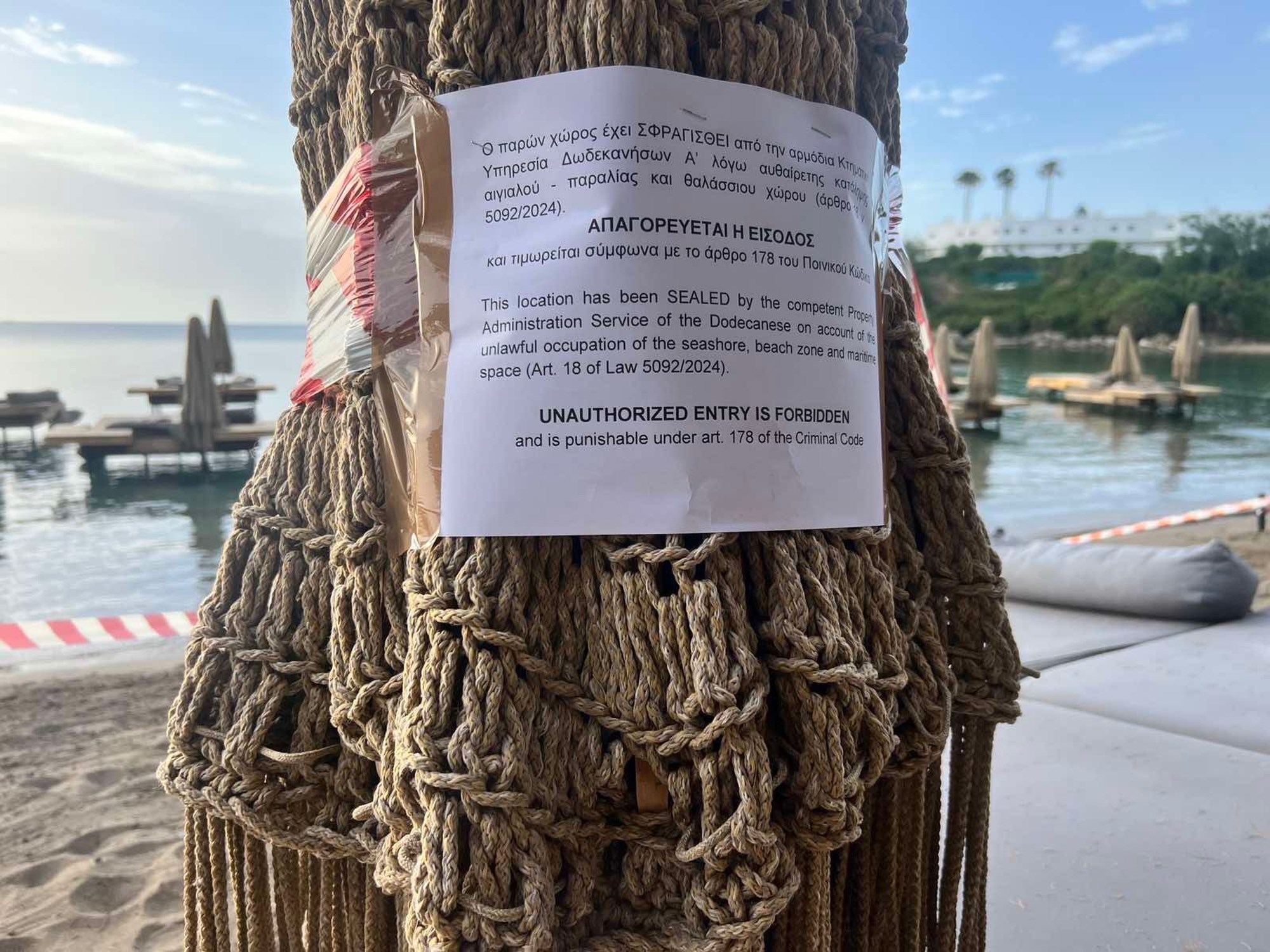 Το συγκεκριμένο μαγαζί είχε γίνει γνωστό από πέρυσι για τις κατασκευές με τις ξαπλώστρες και τις ομπρέλες μέσα στη θάλασσα και τους εργαζόμενους που αναγκάζονταν να βουλιάζουν μέχρι τον λαιμό στο νερό για να εξυπηρετήσουν τους θαμώνες.