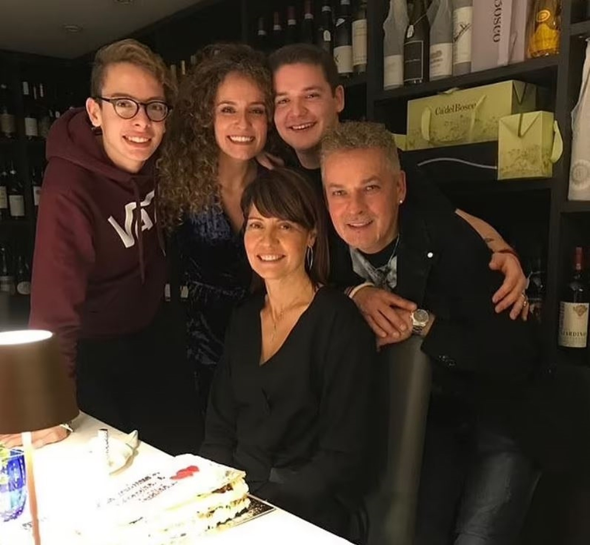 Ο Ρομπέρτο Μπάτζιο με την οικογένειά του. Με τη σύζυγό του έχουν τρία παιδιά: Τη Βαλεντίνα που έχει γεννηθεί το 1990, τον Ματία (δεξιά) γεννημένο το 1994 και τον Λεονάρτο (αριστερά) γεννημένο το 2005.