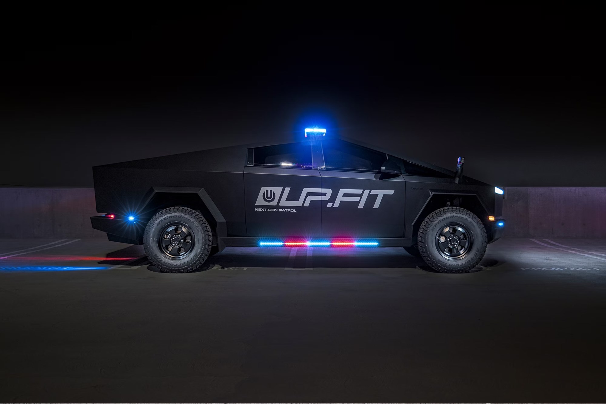 Ενώ οι εικόνες εδώ δείχνουν ένα βασικό αστυνομικό όχημα, η UP.FIT λέει ότι μπορεί να τροποποιηθεί για άλλους σκοπούς, όπως τακτικές, στρατιωτικές ή επιχειρήσεις έρευνας και διάσωσης. Χαρακτηριστικά όπως χωρίσματα κρατουμένων, αποθήκευση όπλων και ειδικών εργαλείων και χώροι για αστυνομικούς σκύλους K9 μπορούν να προστεθούν στο Tesla Cybertruck.