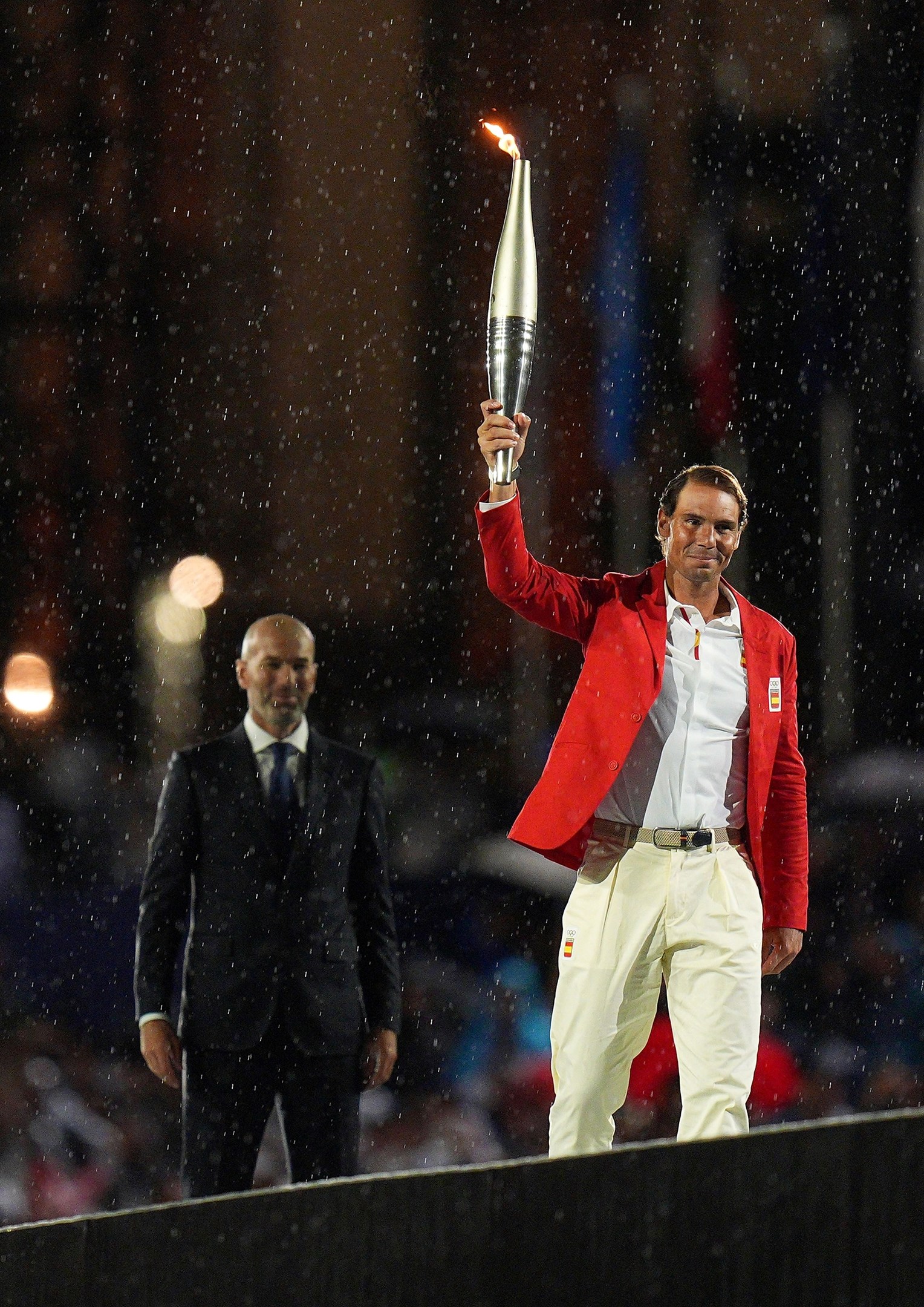 Ακολούθησε ο όρκος των αθλητών και η τελετή έναρξης τα είχε όλα: διάσημα πρόσωπα, εκπλήξεις και μουσική. Και όλα αυτά υπό βροχή, που δεν σταμάτησε ούτε για ένα λεπτό.