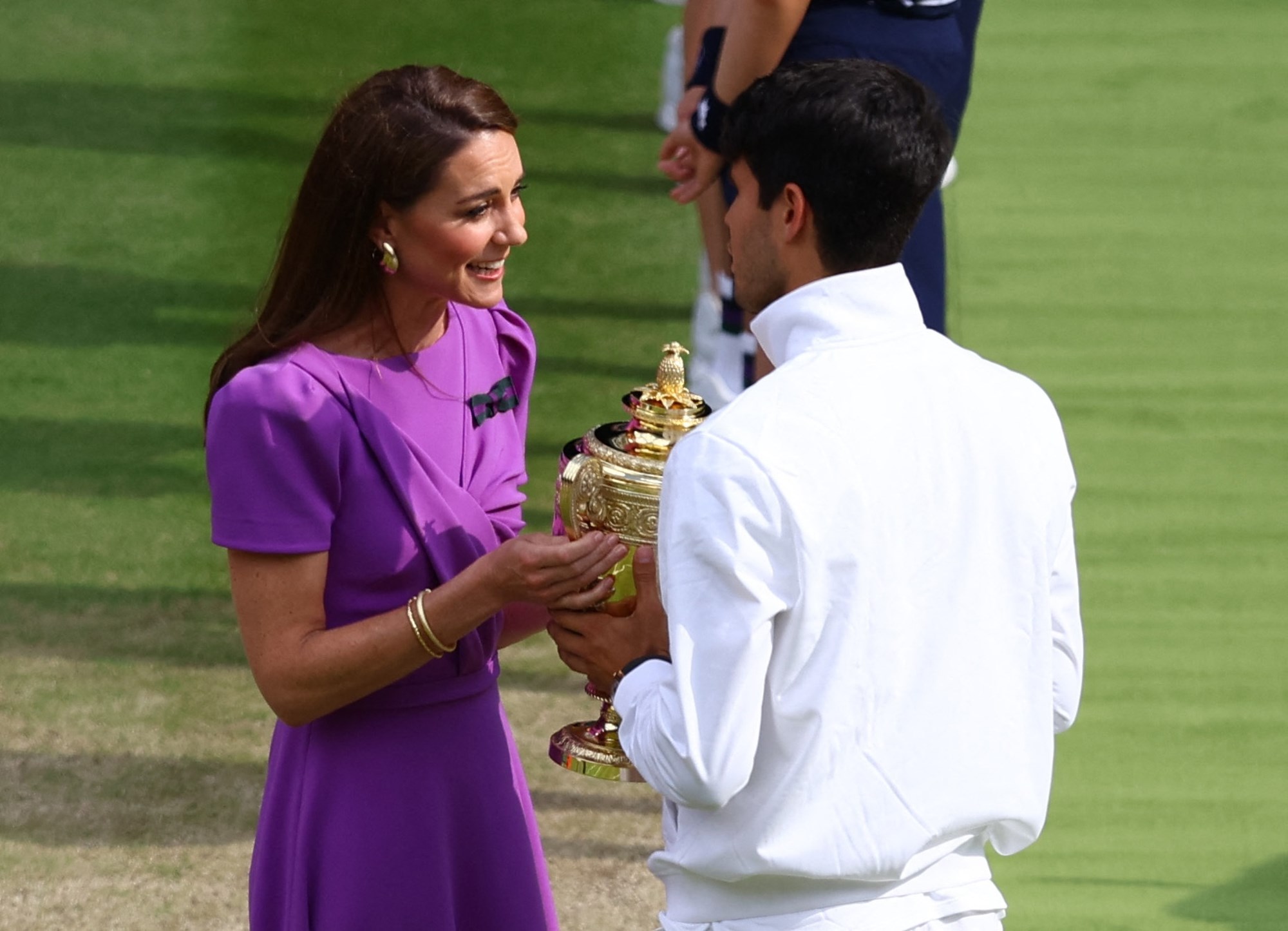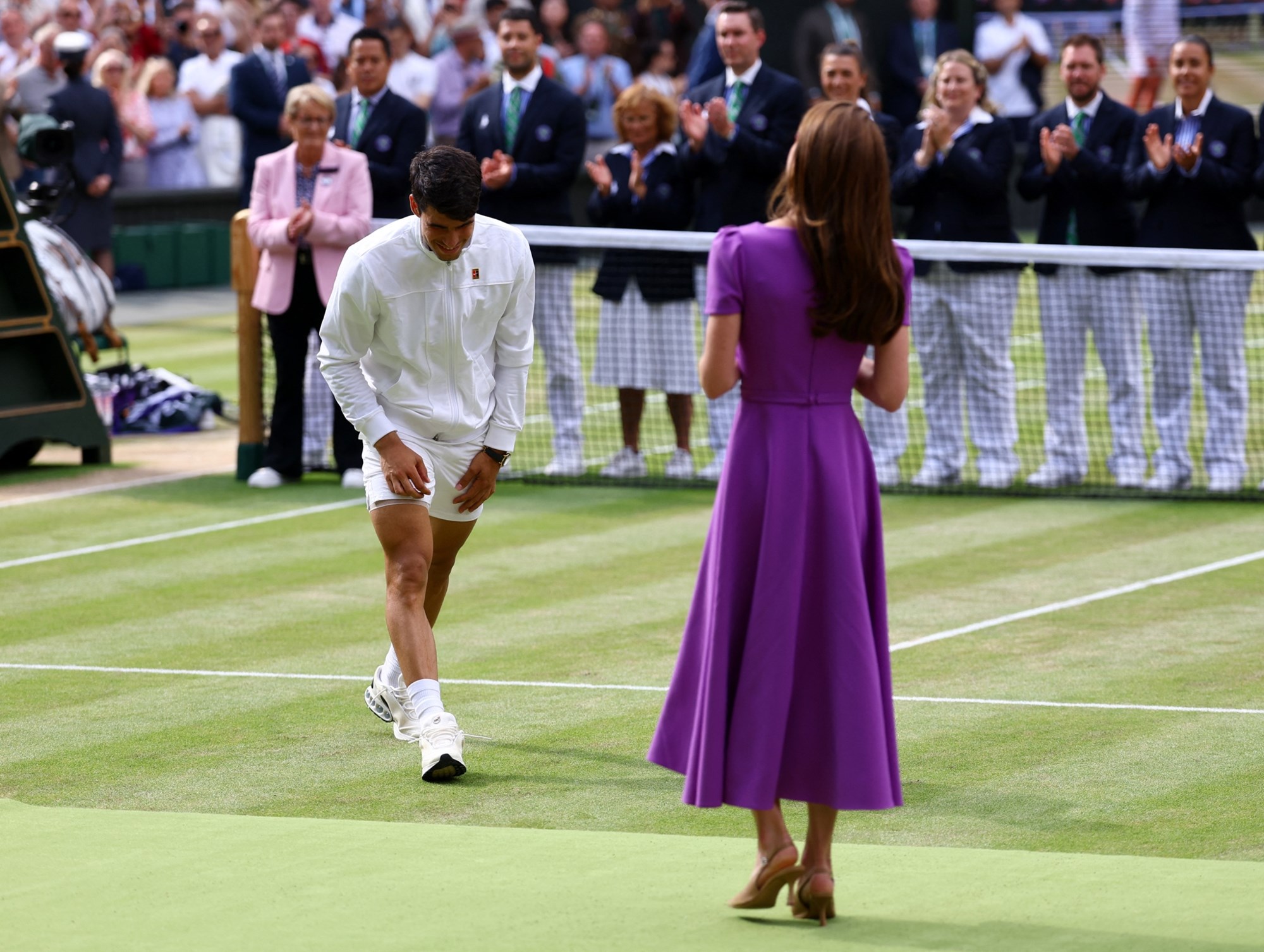 Λίγο μετά τη λήξη του αγώνα, έκανε την εμφάνισή της η Κέιτ Μίντλεντον η οποία έδωσε τα τρόπαια στον πρωταθλητή, Κάρλος Αλκαράθ και στον Νόβακ Τζόκοβιτς οι οποίοι υποκλίθηκαν στην πριγκίπισσα της Ουαλίας.