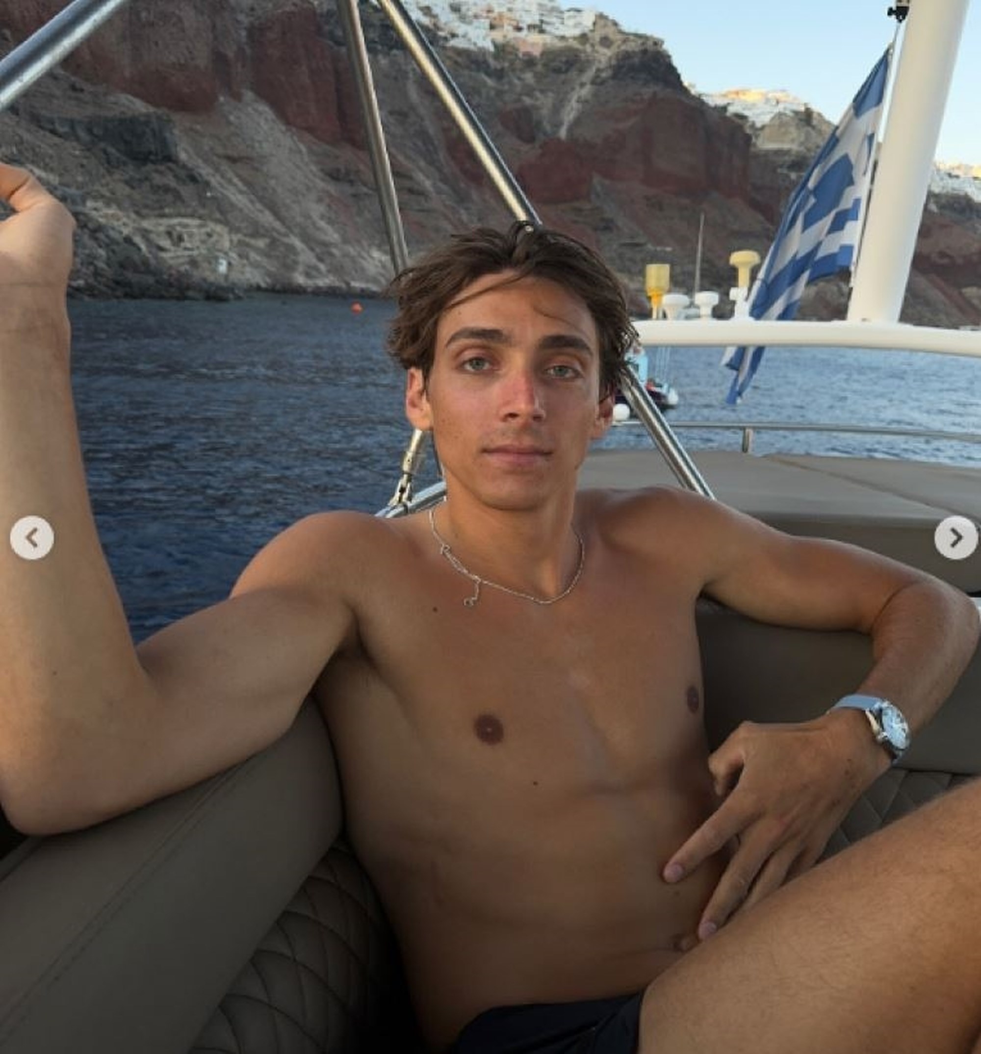 Ο 24χρονος Ντουπλάντις φαίνεται στις φωτογραφίες να βουτάει στη θάλασσα από σκάφος, ενώ σε άλλη ανάρτηση το ζευγάρι ανέβασε βίντεο όπου οι δύο νέοι ποζάρουν μαζί με το χρυσό μετάλλιο.