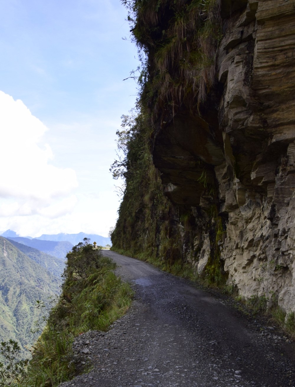 Έδαφος και ανάγλυφο: Ο δρόμος διασχίζει την περιοχή Yungas των Άνδεων, με στενά μονοπάτια χαραγμένα στην πλαγιά του βουνού.