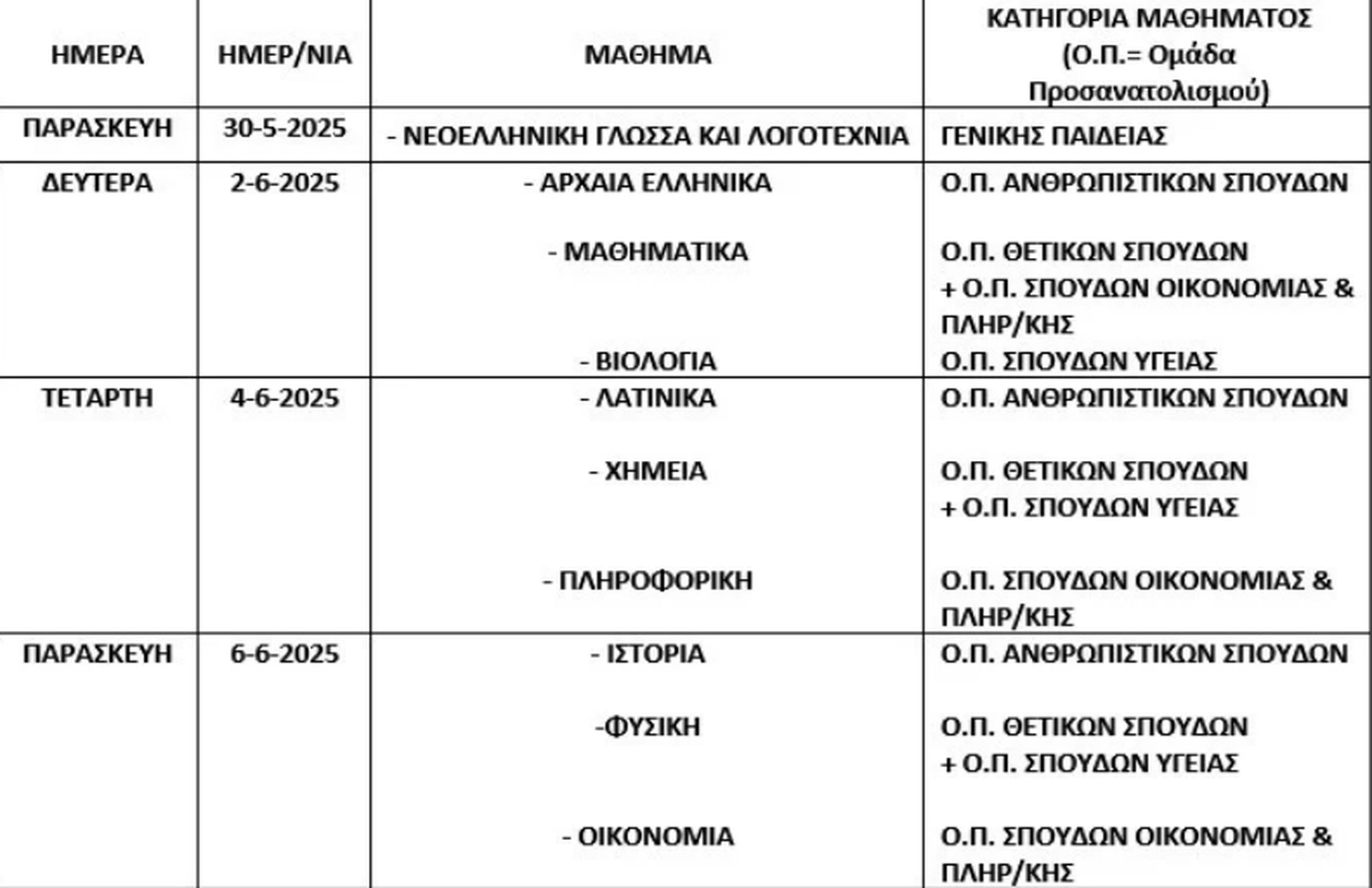 Αναλυτικά το πρόγραμμα των Πανελληνίων 2025