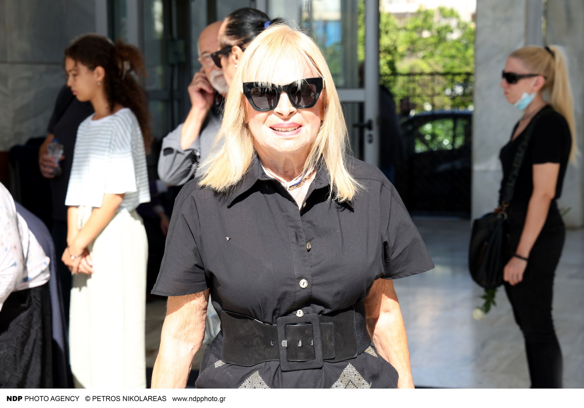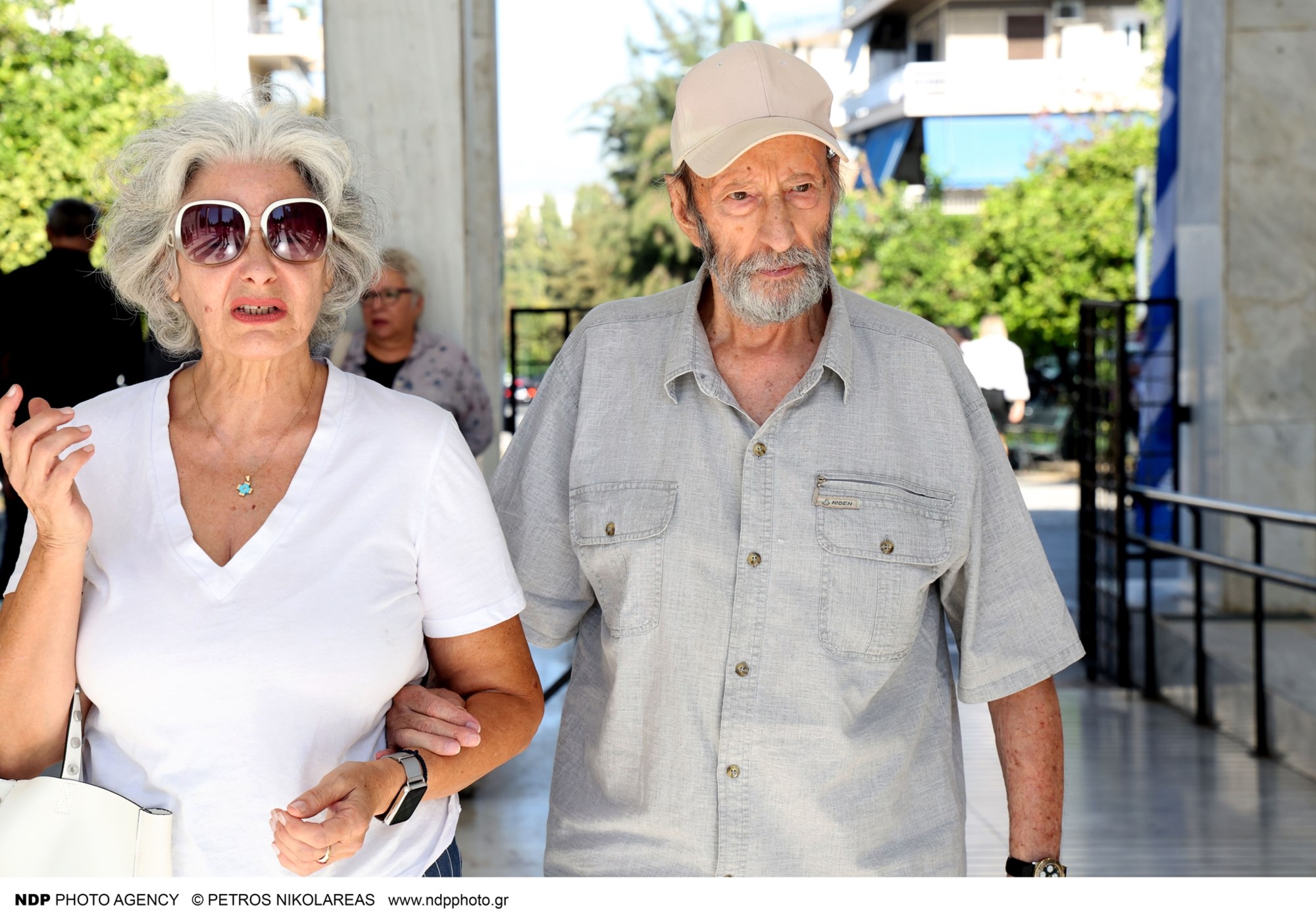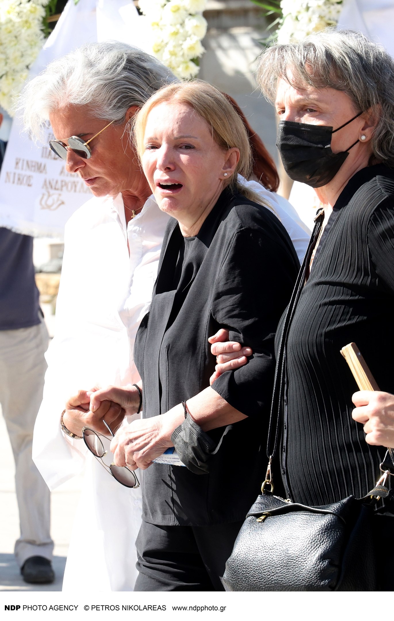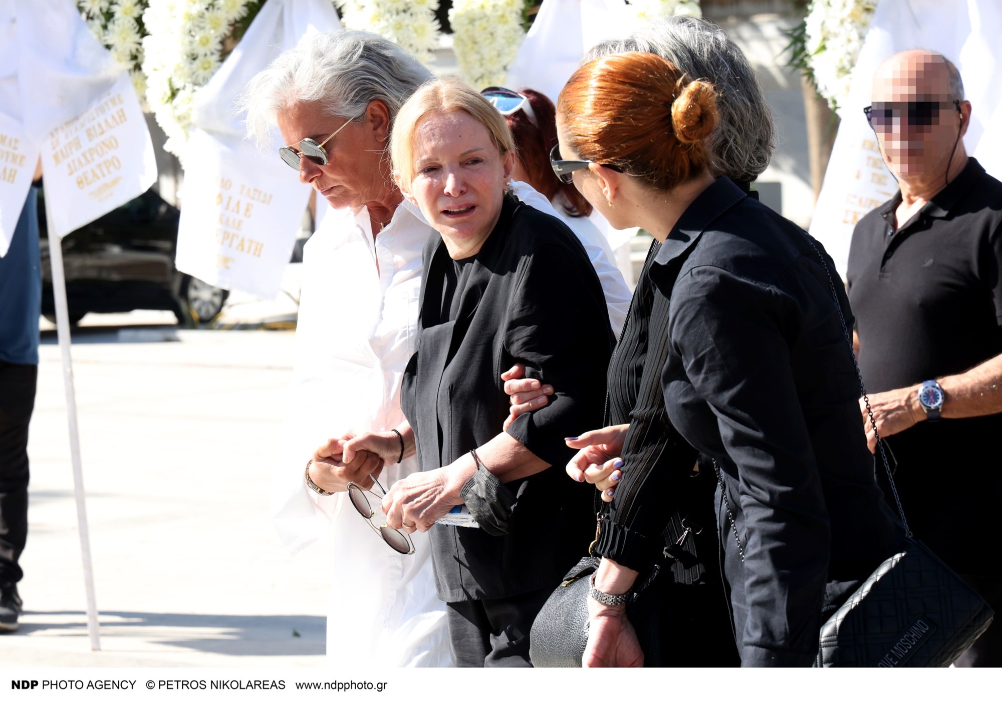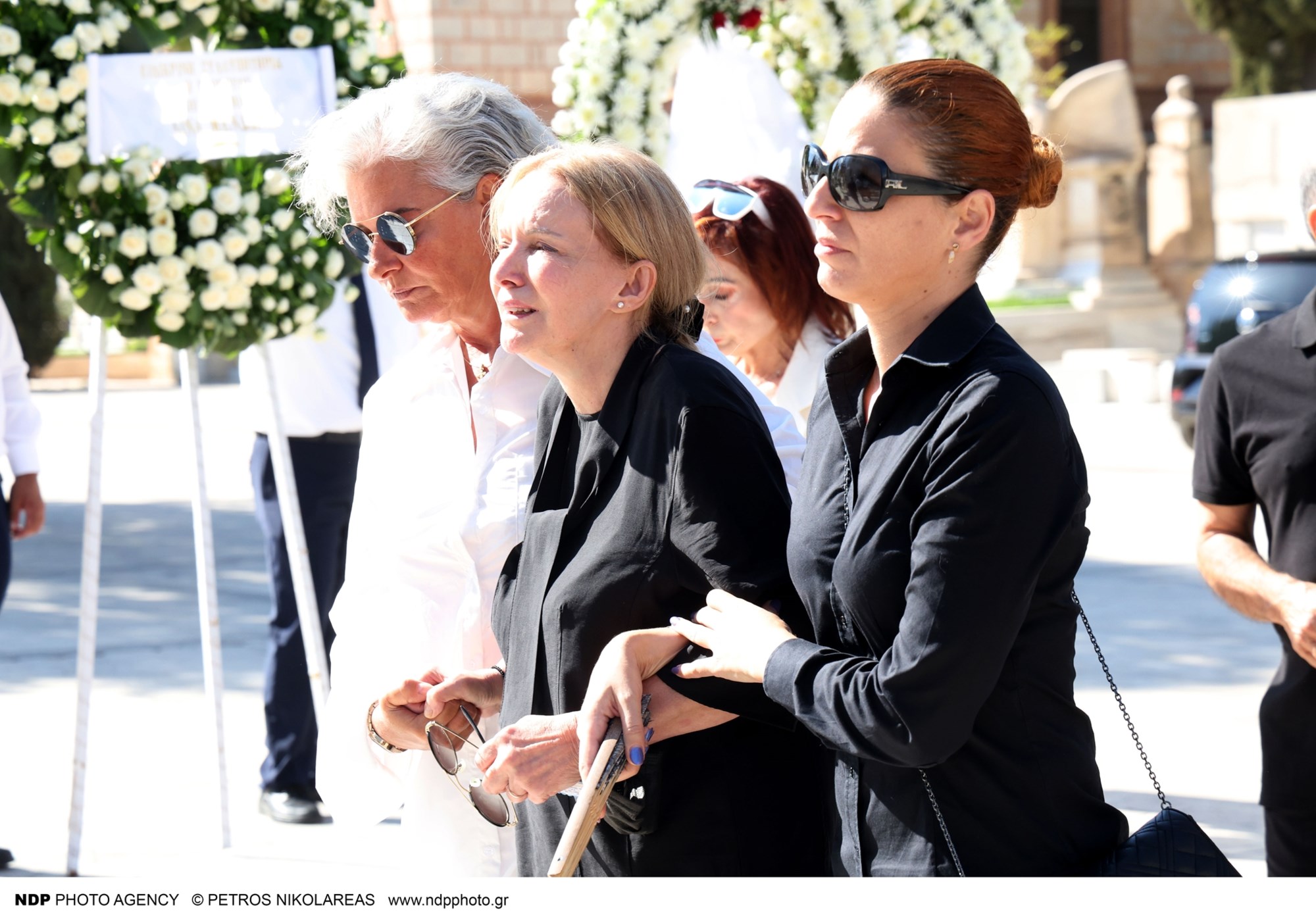 Υποβασταζόμενη η σύζυγός του Γιάννη Μόρτζου, Γιούλη Ζήκου συνόδευσε τον άντρα της ζωής της στην τελευταία του κατοικία, ενώ ήταν πραγματικά συντετριμμένη.