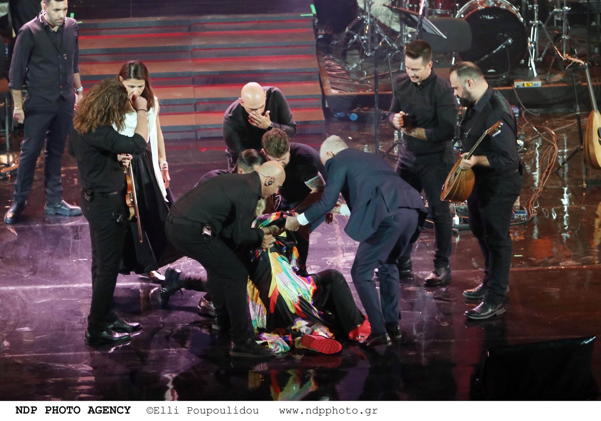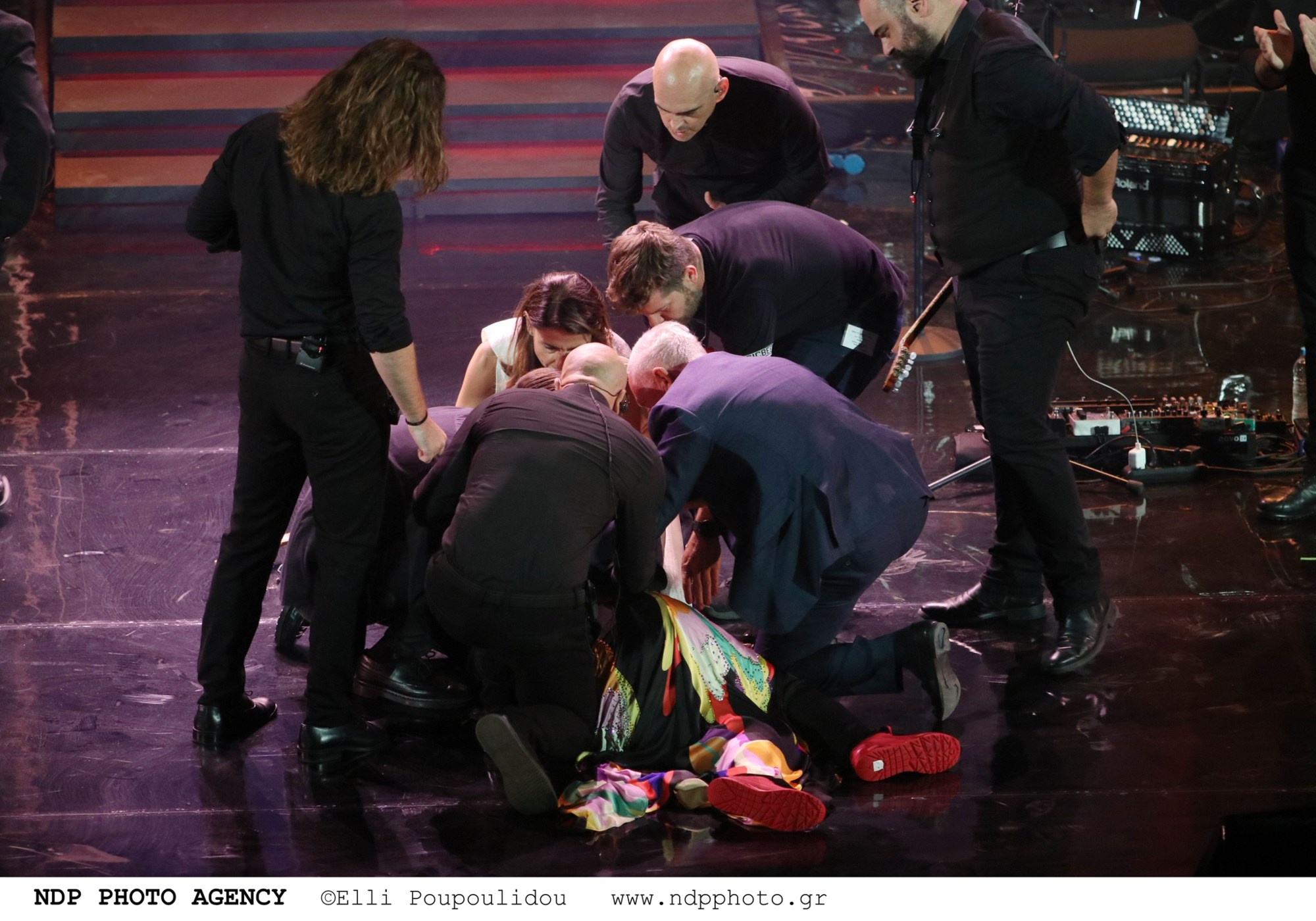 Άνθρωποι των διοργανωτών έσπευσαν να βοηθήσουν την 86χρονη καλλιτέχνιδα, ενώ κλήθηκε γιατρός για να της προσφέρει τις πρώτες βοήθειες. Λίγα λεπτά αργότερα, στους θεατές δόθηκαν οδηγίες να αποχωρήσουν από το Ηρώδειο.